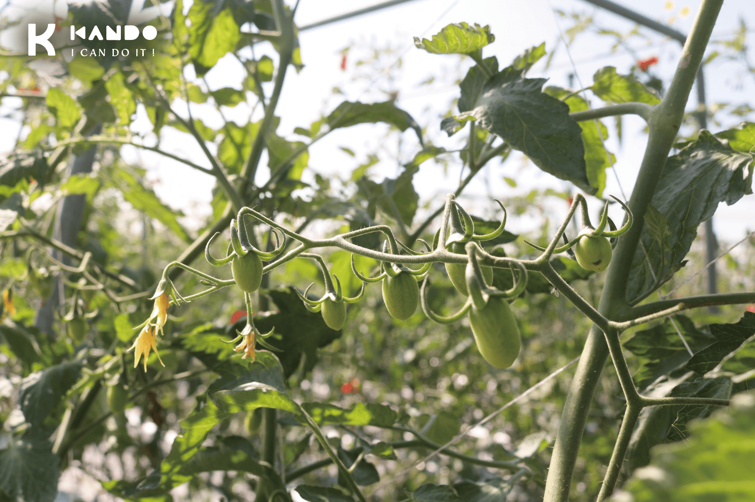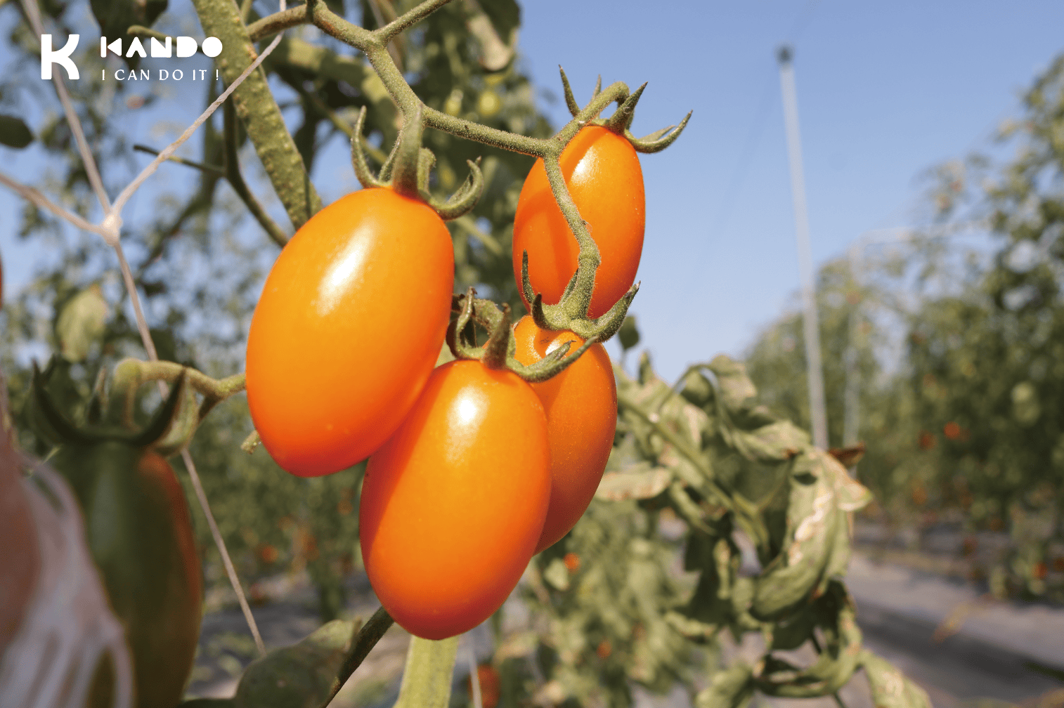 橙蜜蕃茄最適合在十月種植,但李大哥會在九月提早下苗,提早滿足早期市場需求,並使用露天種植,相較於溫室溫度較低,更適合九月仍偏高溫的氣候,露天小蕃茄,因節間較短,整體株高較低;而溫室小番茄節間較長,藤蔓需以斜向方式固定引導攀爬。從種植到開始採收,約需兩個半月,採收期約四至五個月,若遇到雨季,則會提早採收,以確保果實品質。