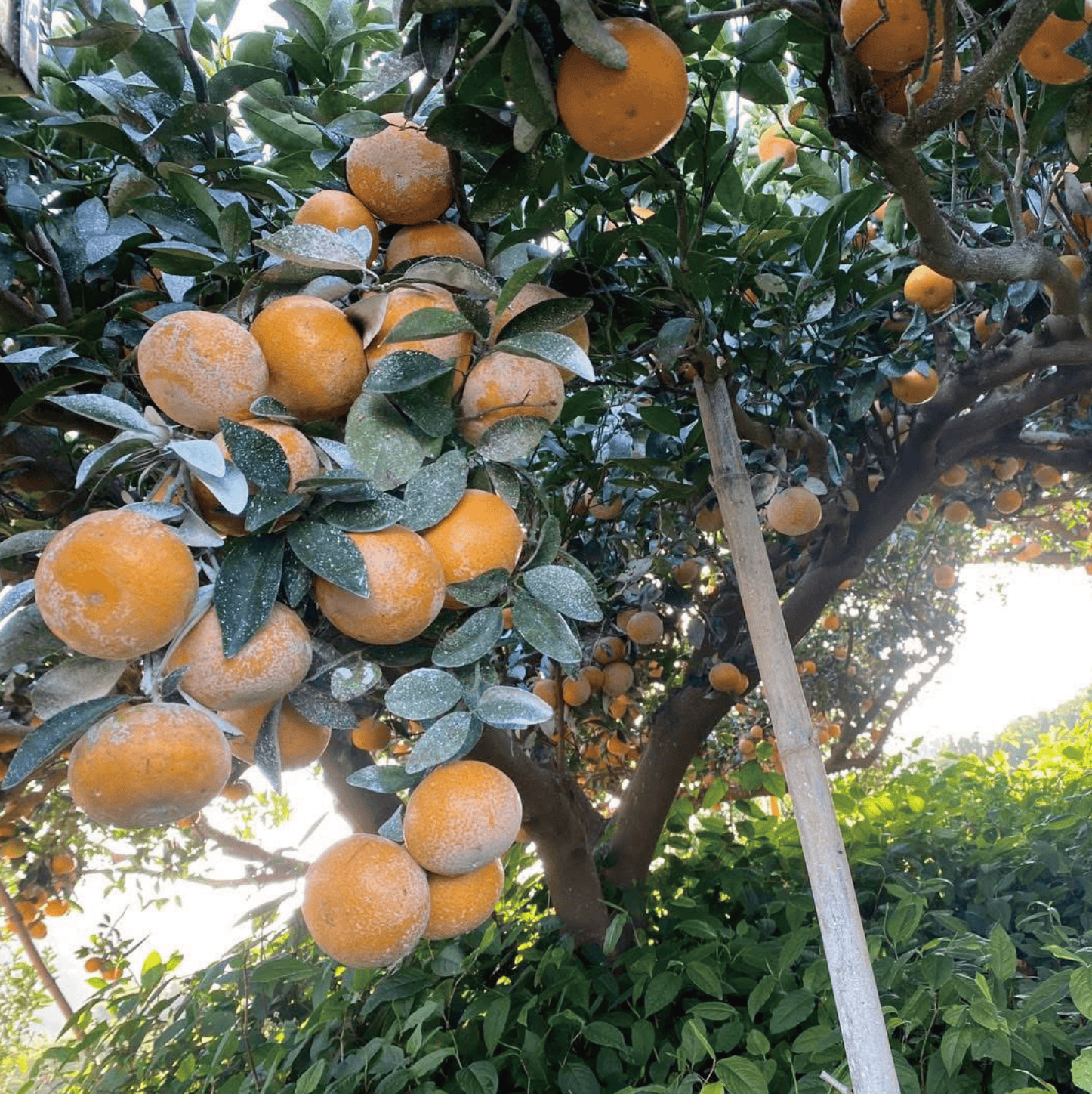 東勢擁有落山風與海風交織的地利,日夜溫差大加上砂質土壤,滋養出酸甜均衡的風味,增添一抹有別於南部茂谷柑的獨特滋味。除了地理優勢外,在農耕技術上也是相當重要,剪枝清園,病蟲防治是必要的農事,肥培管理則確保果樹健康與果實品質,除此之外,茂谷柑還有一項特殊的工作項目,就是防曬,由於氣候變遷,每到夏季需在果皮表面噴灑碳酸鈣,細心呵護果實外觀不受損。