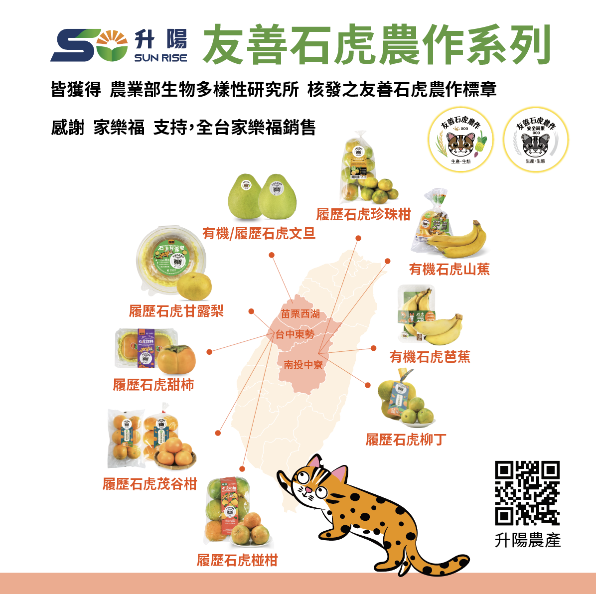 作為長期深耕產地的農產整合平台,升陽農產 將持續串聯產地、通路與消費端,推動友善石虎農作與綠色餐飲發展,讓「保育」不只是被看見,更能被參與、被支持。