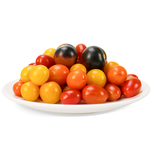 彩色小蕃茄富含番茄紅素、維生素C及膳食纖維,顏色鮮豔繽紛,既美觀又營養豐富,是健康零嘴或沙拉的理想選擇。
