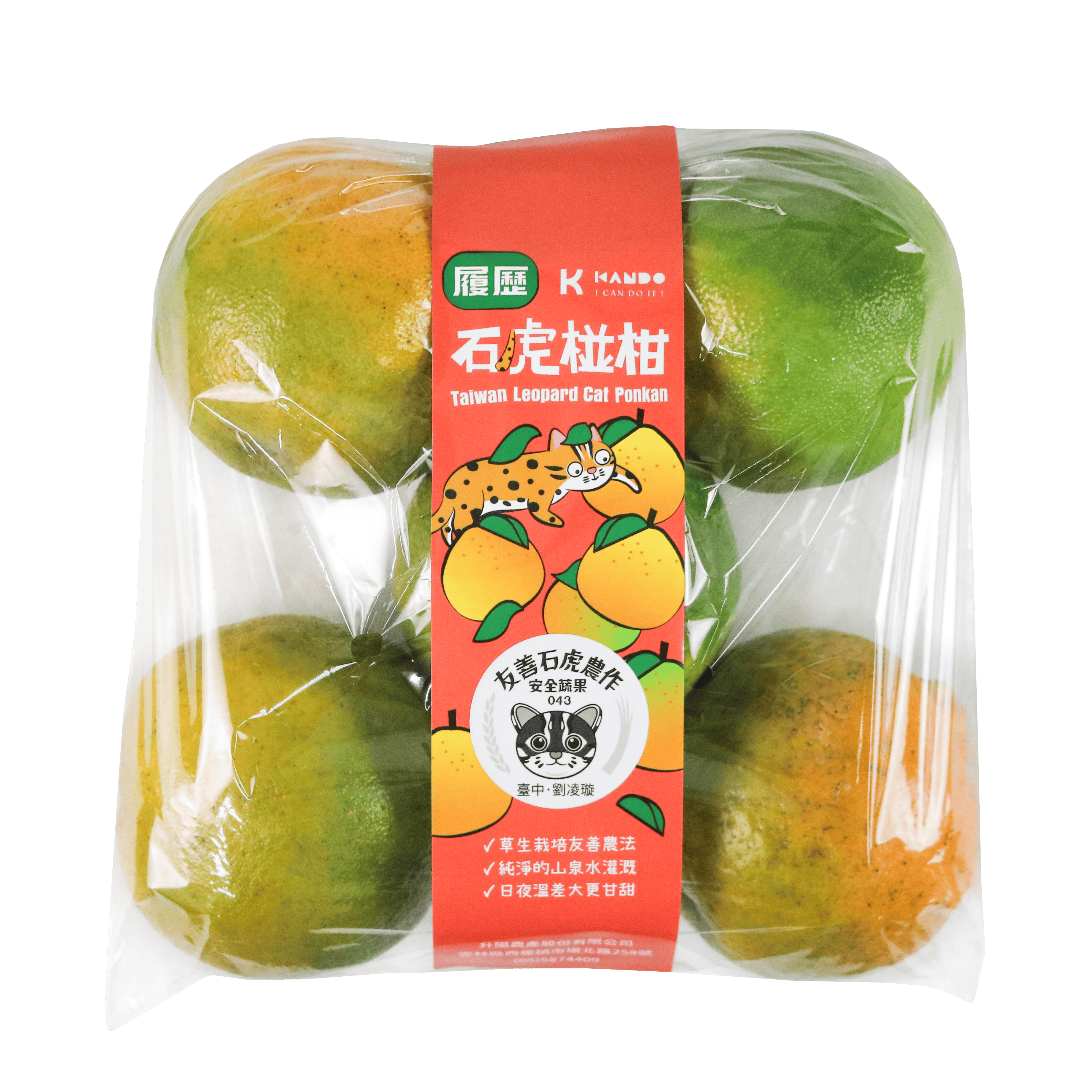 履歷石虎椪柑產品擁有雙標章認證,購買時請認明可溯源生產的履歷標章以及農業部生物多樣性研究所與農業部林業及自然保育署(林務局)合作核發的友善石虎農作-安全蔬果標章。
