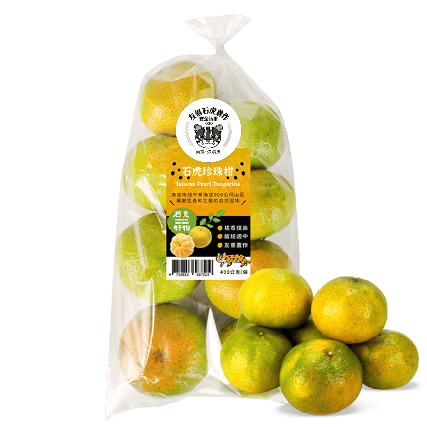 履歷石虎珍珠柑產品擁有雙標章認證,購買時請認明可溯源生產的履歷標章以及農業部生物多樣性研究所與農業部林業及自然保育署(林務局)合作核發的友善石虎農作-安全蔬果標章。