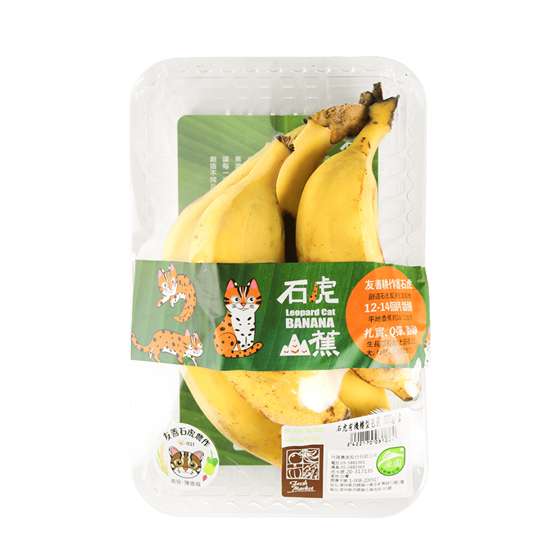 有機石虎芭蕉產品擁有雙標章認證,購買時請認明有機標章以及農業部生物多樣性研究所與農業部林業及自然保育署(林務局)合作核發的友善石虎農作標章。