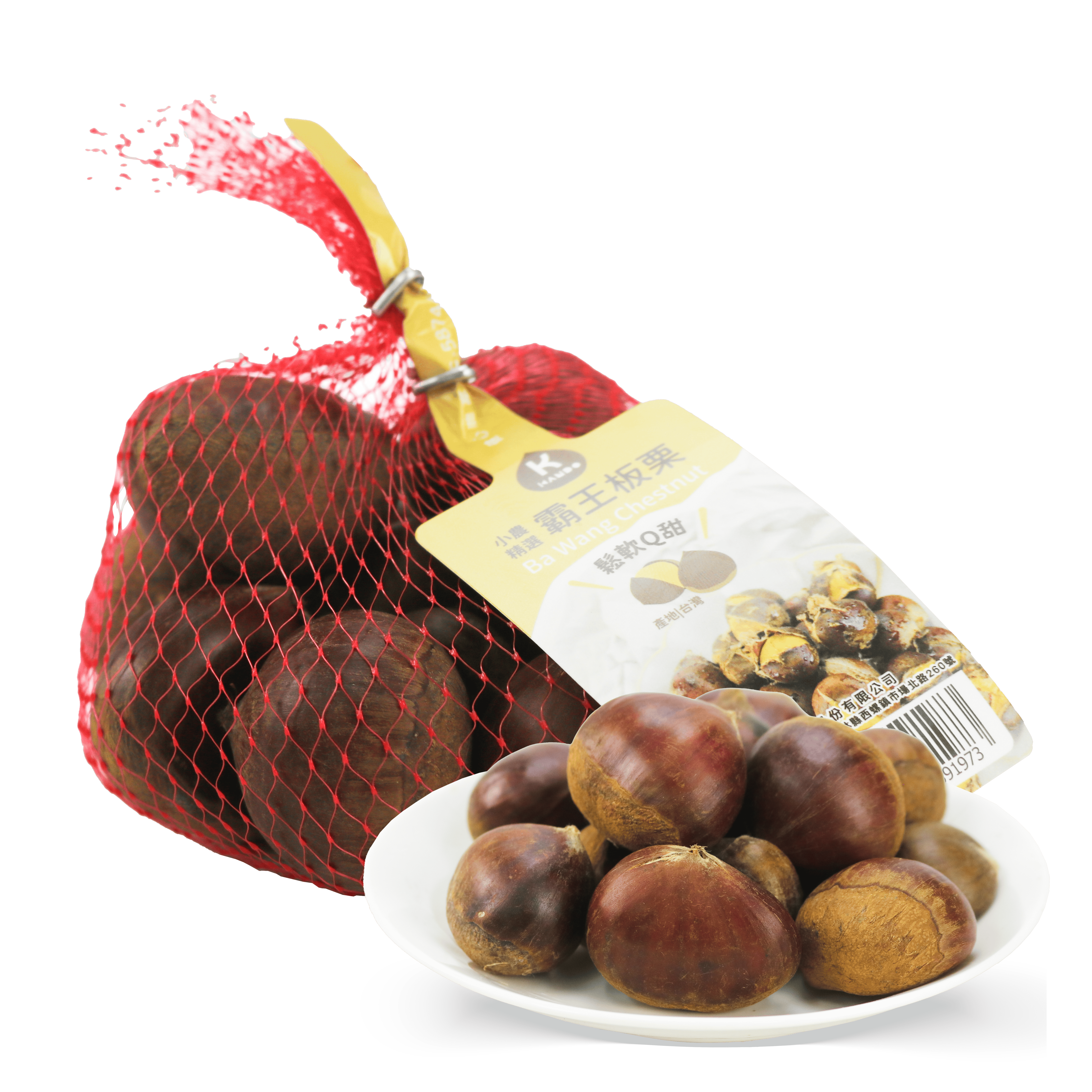 來自嘉義中埔——全球緯度最低、產期最早的栗子產地,自日治時期引進的日本改良品種「黃金栗子」,因屬於溫帶樹種,適合生長在海拔1,000公尺以上、攝氏溫度12至14度的山地,經過台灣氣候的百年馴化,孕育有別於中國板栗的風味,果仁飽滿呈金黃色,口感鬆甜綿密,因而被譽為 「千果之王」。